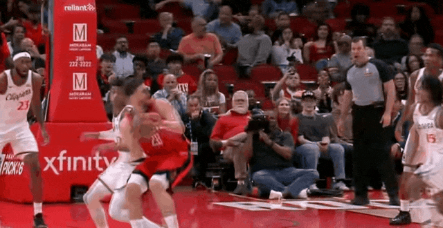——火箭谢泼德阿门申京单侧三人转,吓得快船倾斜一侧,电风扇空位远射。这是攻。